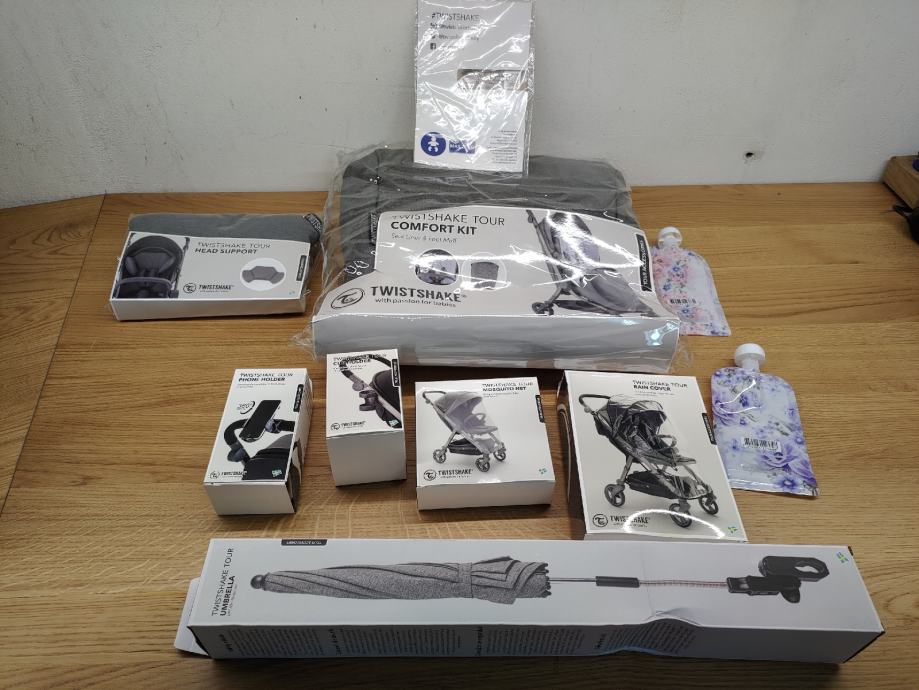 Twistshake Tour kolica, siva sa svim dodacima. Novo, zapakirano i nikad koristeno.