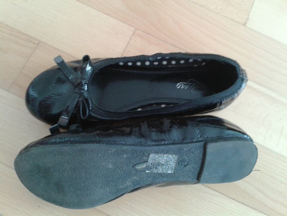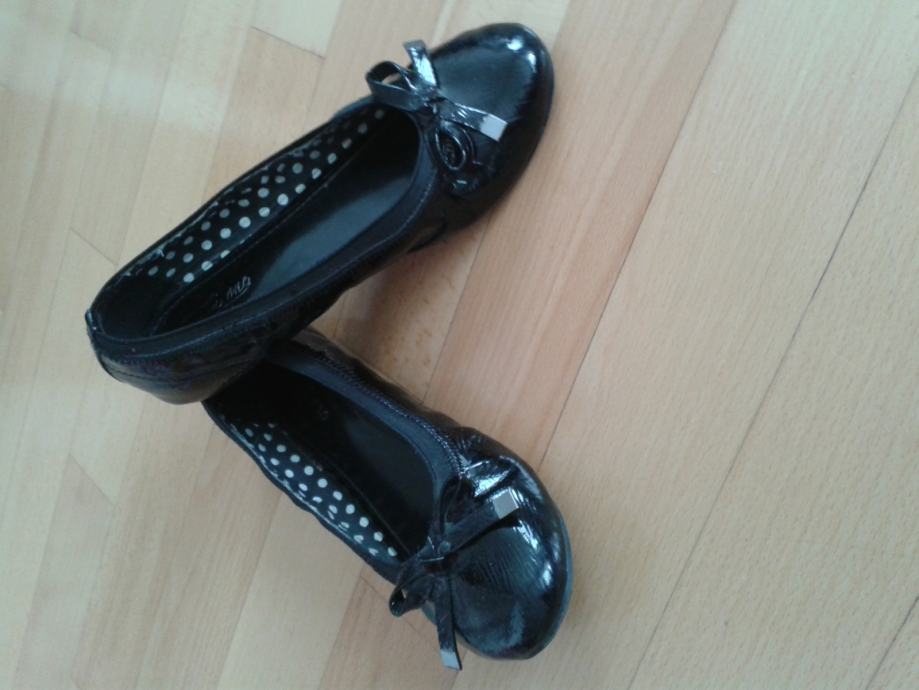 Crne,lakirane balerinke broj 36 u super očuvanom stanju. Unutarnji dio je crne boje s bijelim točkama.