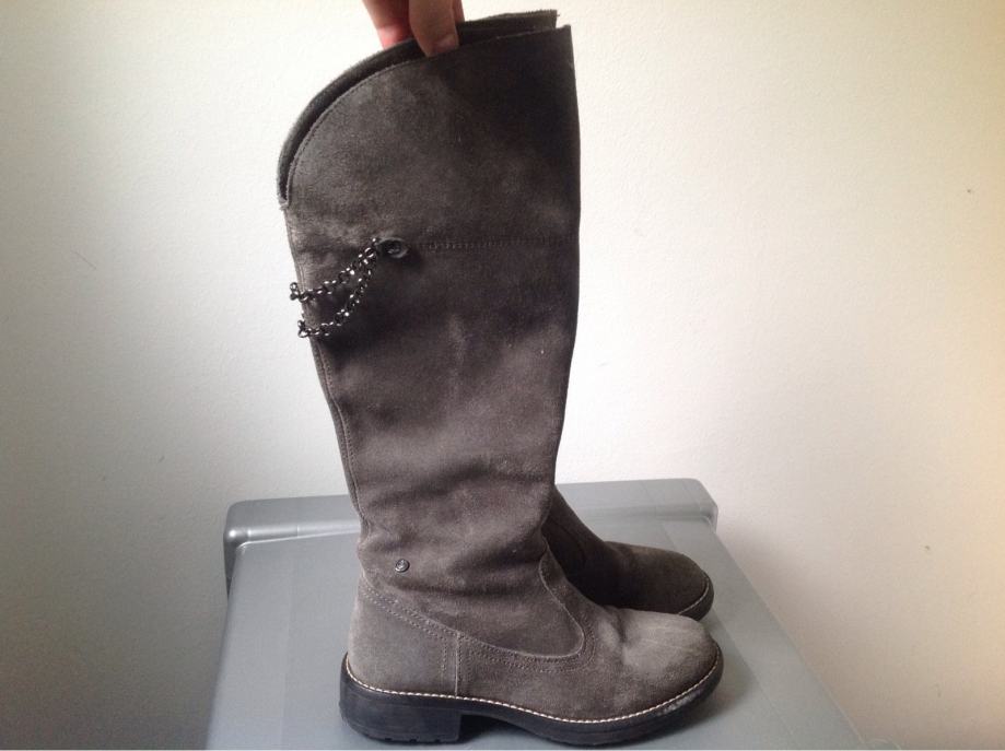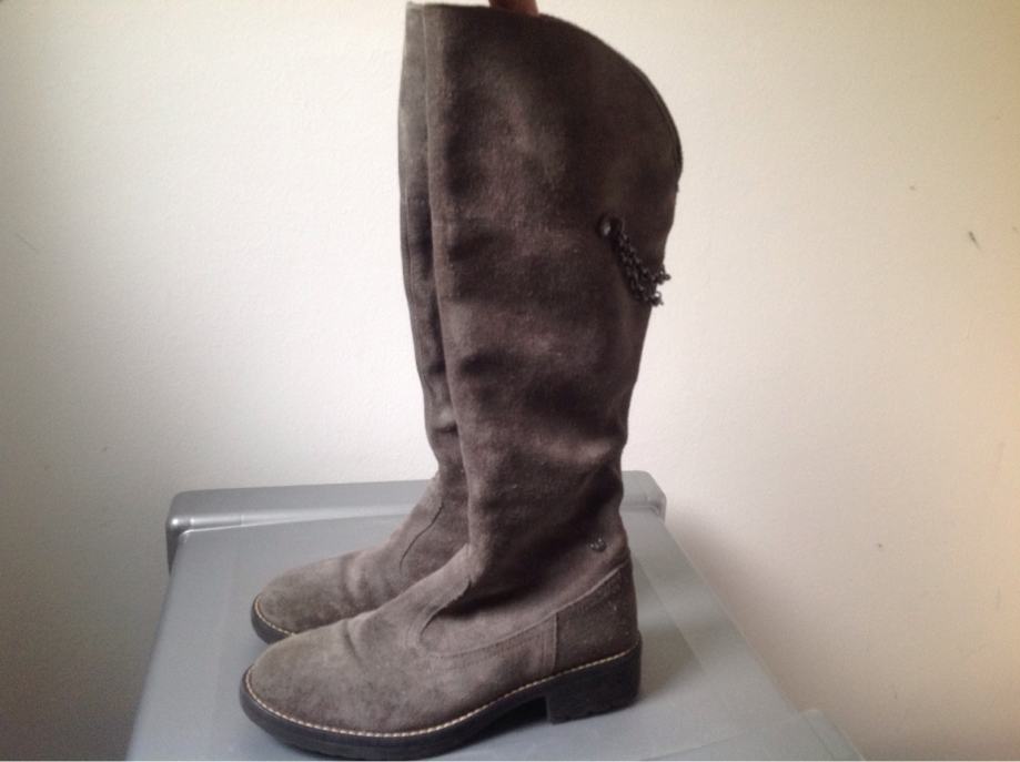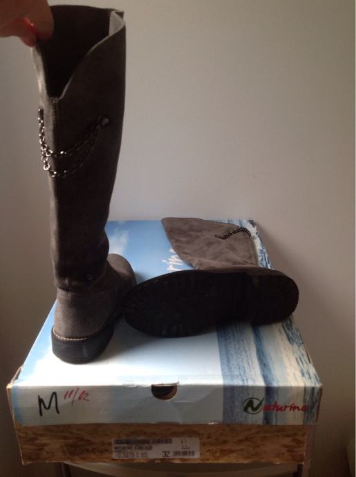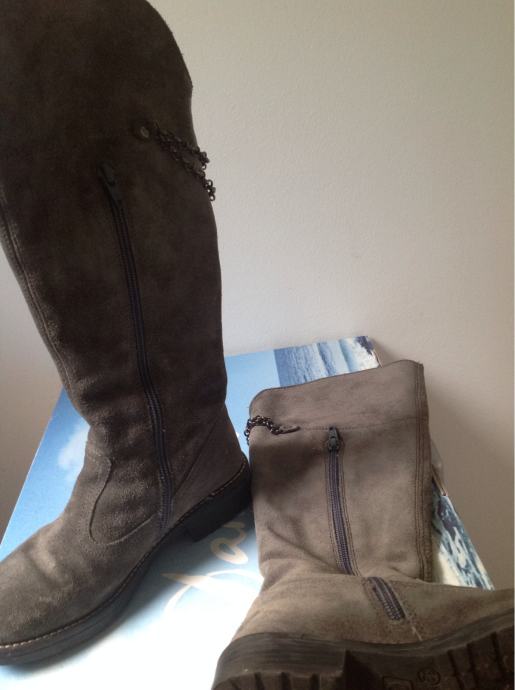 Naturino sive visoke čizme br. 32, izvana brušena koža, iznutra koža, cif sa unutarnje strane, bez oštećenja.