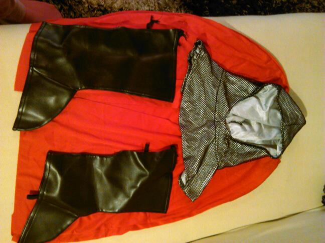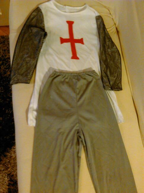 Super ocuvano kompletno odijelo za Vaseg klinca (7-10 god. ili vel. M). Sadrzi:hlace na gumicu , majica dugih rukava , oklop za glavu- od materijala, cizme od materijala ( na gumu samo se navuce na postojece cipele), crveni plast....