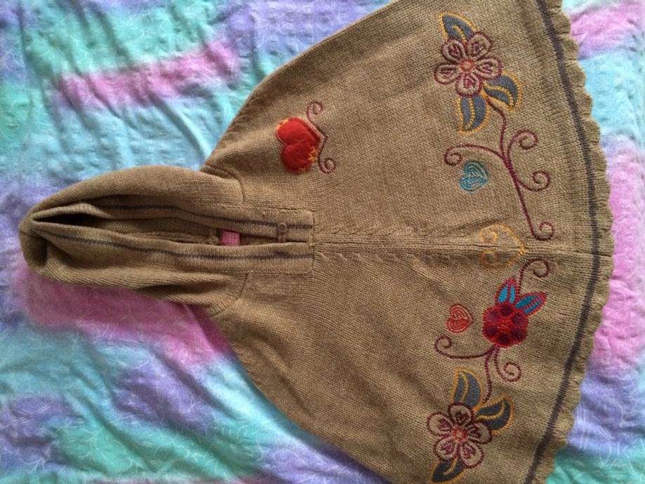 Preslatki vunena pelerina s kapuljačom veličina 110 (4-5 godina). Materijal 100% poliakril. Novo, nenošeno.