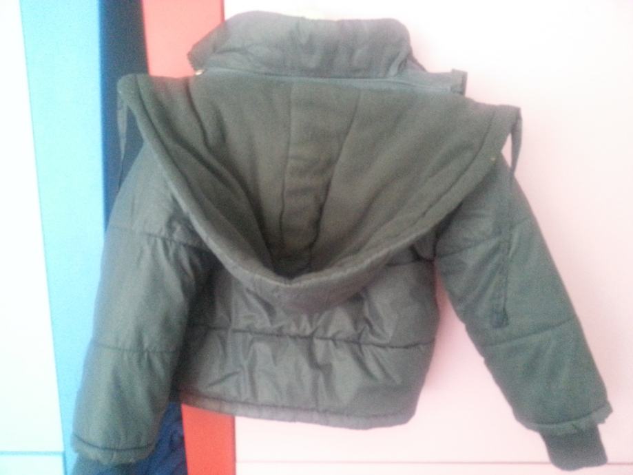 Zimska jakna za dečka jako topla-futrana skroz iznutra, vel.2, siva sa sportskim aplikacijama i odvojivom kapuljačom na cif.