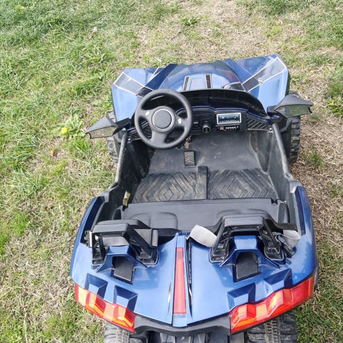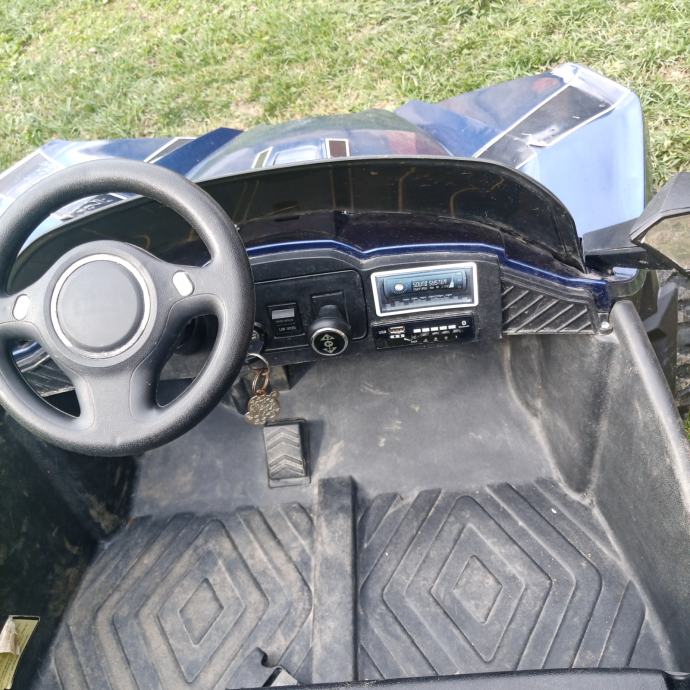 Djecji auto na akumulator, ima i daljinski za roditeljsku kontrolu, svjetla, muziku, bluetooth,usb. Potrebno promjeniti akumulator, ne drzi dugo.