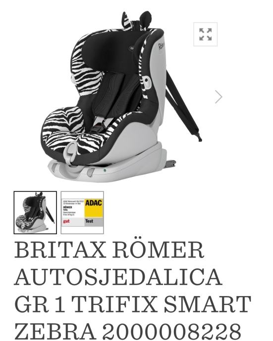Autosjedalica je prikladna za djecu težine od 8 do 18 kg. Römer TriFix je Römereva najsigurnija autosjedalica grupe 1. Odobrena je za upotrebu u svim tipovima automobila pomoću konektora Isofix i vrhunskim načinom pričvršćivanja na točke za fiksiranje. Tehnologija TopTether onemogućuje nagibanje autosjedalice pomoću treće točke za fiksiranje. Kombinacija montiranja iznimno ograničava rotacijsko kretanje autosjedalice i optimizira zaštitu vaše bebe tijekom vožnje. Pored iznimno mekano podstavljenih bočnih strana školjke za dodatnu zaštitu vaše bebe u nju je ugrađena SI-PAD tehnologija koja rasporedi i apsorbira suvišnu energiju što pruža posebnu bočnu zaštitu tijekom bočnog udarca automobila. Isofix+ je univerzalni Isofix sistem koji omogućuje direktno pričvršćivanje autosjedalice na Isofix i Toptether konektore u vašem automobilu. Dijete je u autosjedalici vezano pomoću sigurnosnog pojasa u 5 točaka koji se odlikuje centralnim sistemom prilagodbe dužine. Ramene pojaseve je moguće prilagoditi jednom rukom, a sprječavaju pogreške prilikom sljedećih vezivanja i prilagođavanja po visini. Indikatori u boji prikazuju sigurno zaklapanje Isofix sistema i pričvršćivanje Toptether sigurnosnog pojasa. Autosjedalica pruža više mogućnosti za prilagodbu naslona za leđa, visinu kojeg je moguće prilagoditi bez buđenja djeteta. Presvlaka je meko podstavljena i periva te se lako skida. V-Tether je univerzalni TopTether sistem koji apsorbira suvišnu energiju u slučaju sudara automobila. TopTether pruža treću točku za fiksiranje i ograničava rotacijsko kretanje autosjedalice. SI-PAD tehnologija omogućuje dodatnu bočnu zaštitu u slučaju sudara automobila.