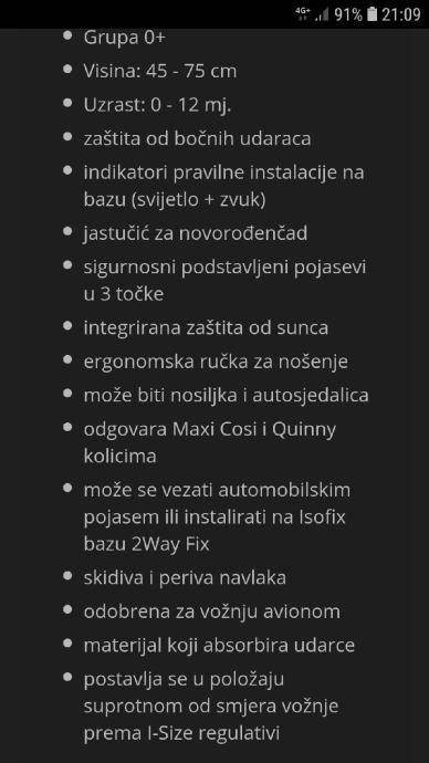 Baza i dvije auto sjedalice(jaje + sjedalica do 105 cm 2way pearl) uščuvana, ko nova, malo korištena, jastuk za novorođenčad i sjenilo za sunce, vrlo dobri testovi za sigurnost
