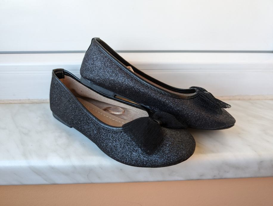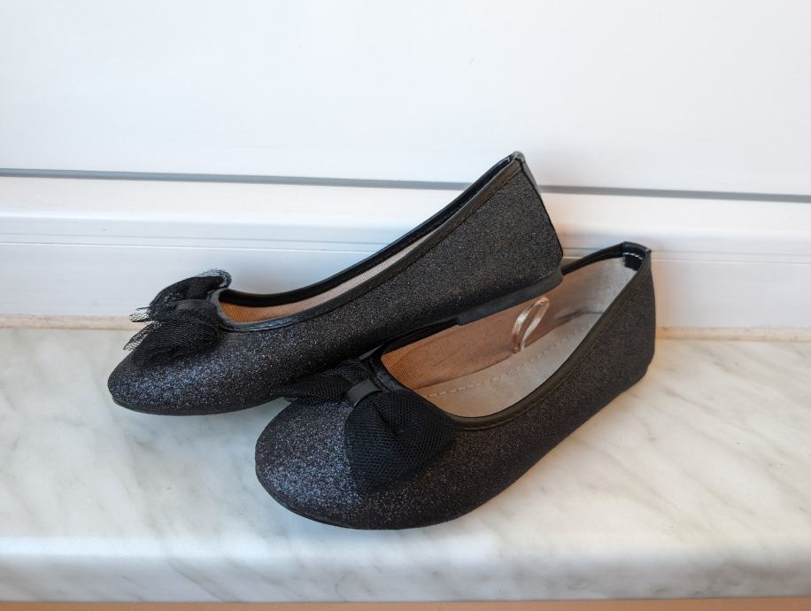 2. Crne svjetlucave balerinke br. 32, s mašnom naprijed, nošene samo jednom, cijena 10 eura;