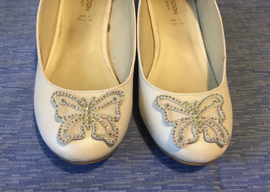 Cipele za djevojčice bijele s potpeticom i ukrasom leptira 36 Monsoon