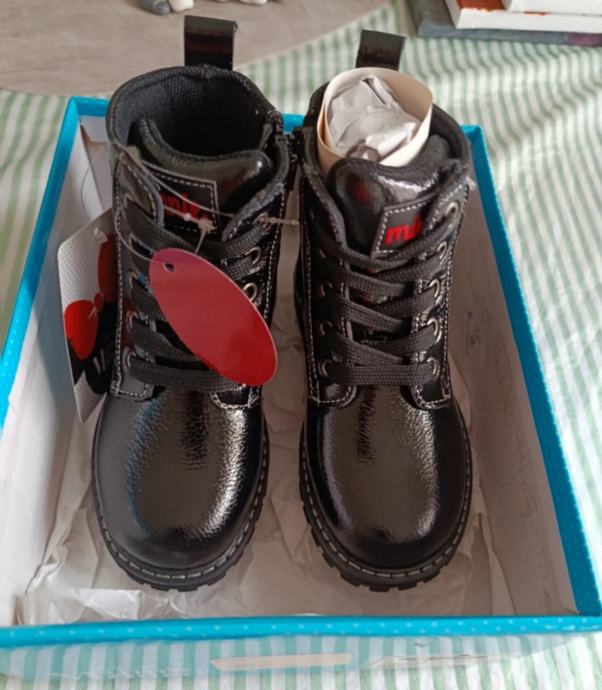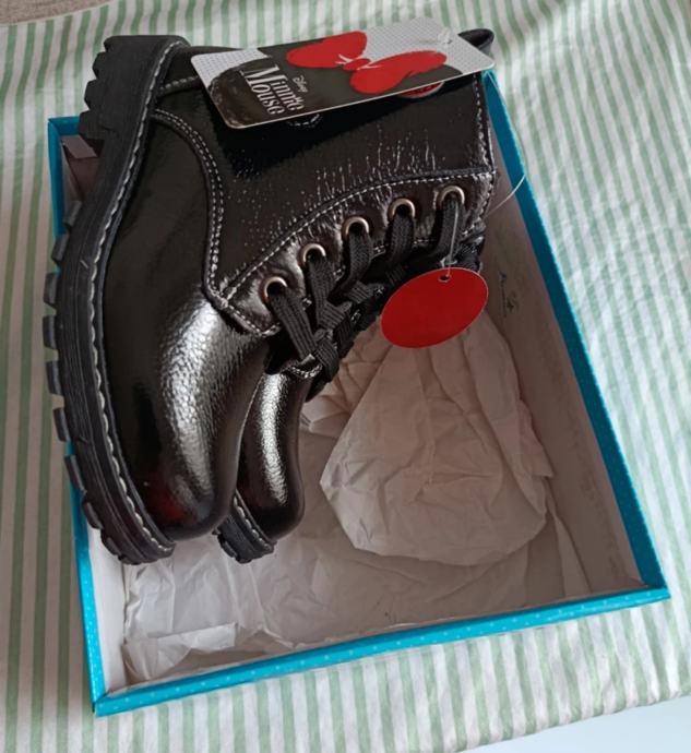 Prodajem nove cipelice za djevojčice veličine 26 s etiketom. Crne su boje s lakiranim slojem koji se lijepo sjaji. Čizme/gležnjače imaju deblji đon koji pruža dobru podršku. Dolaze u originalnoj kutiji s Minnie Mouse motivom.