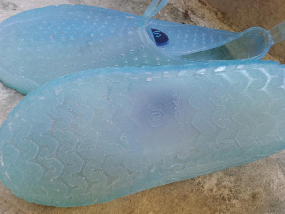 Prodajem svijetloplave poluprozirne lagane ljetne gumene dječje papuče / natikače za more i bazen , kao nove . Mogu biti za cure ili dečke , unisex . Veličina 30 . 4 eura + pt.