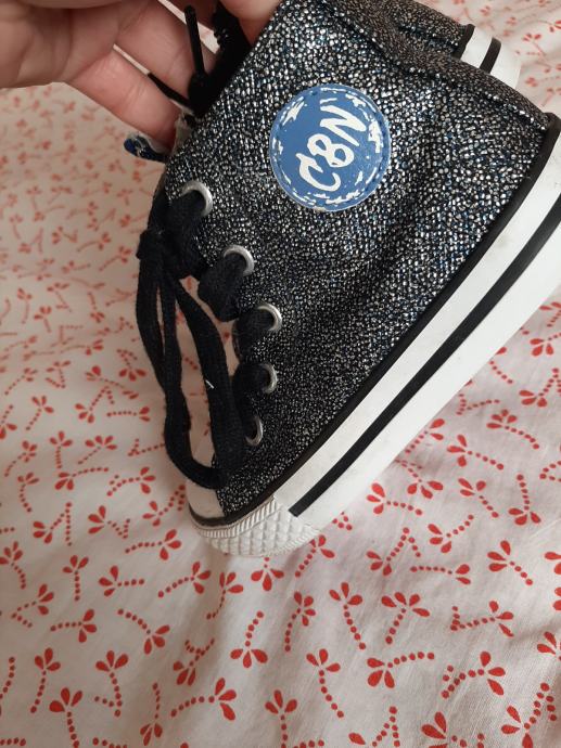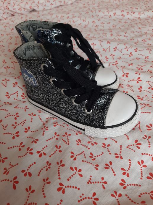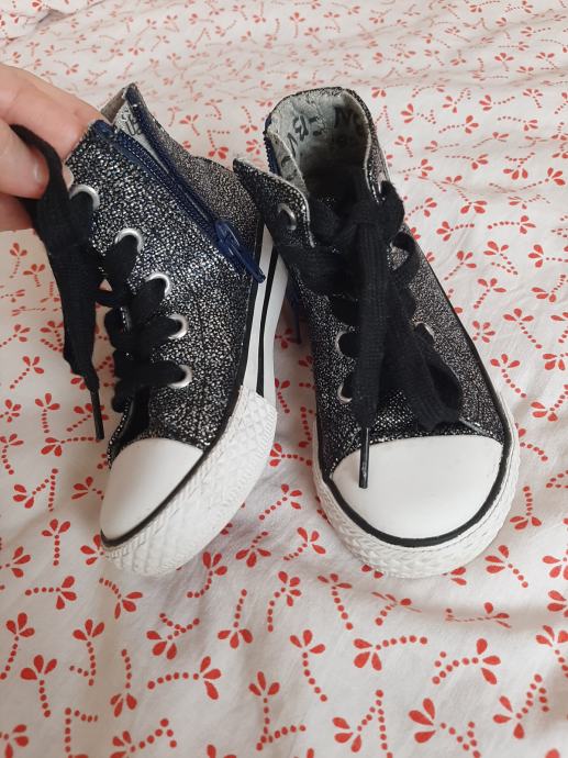Dječje visoke tenisice - cipele Ciciban. Sastrane sa zatvaračem. Anatomska kožna tabanica. Šljokaste. Nošene svega par puta. Bez oštećenja. Vel. 26. Unutarnje gazište 16.5cm
