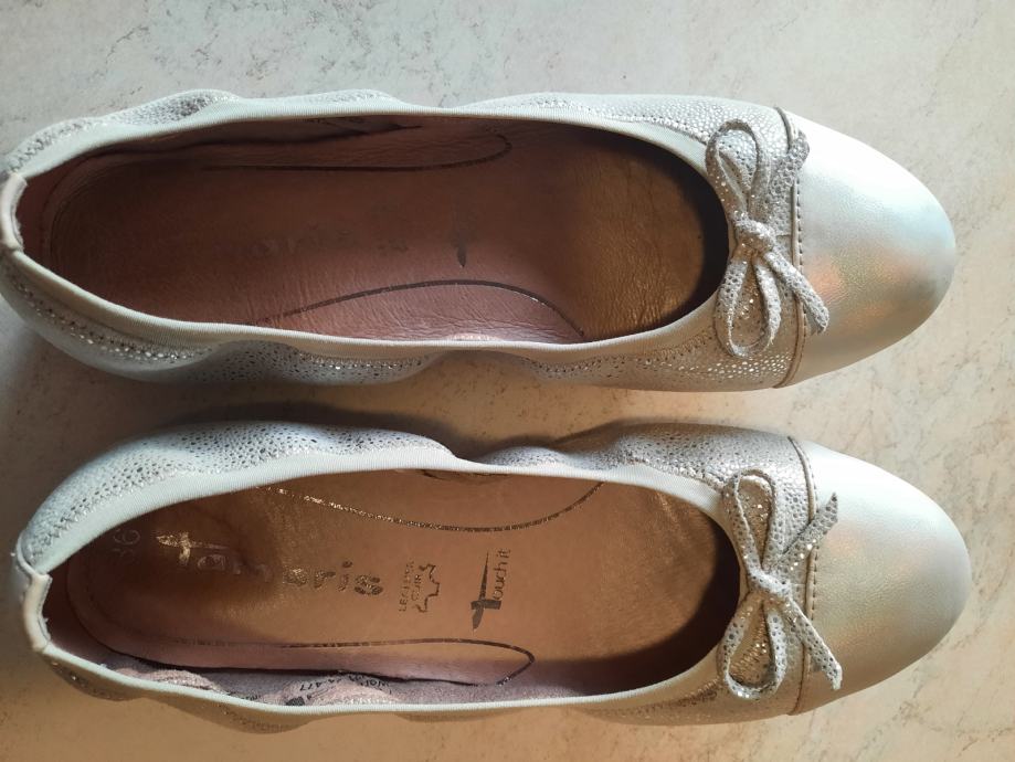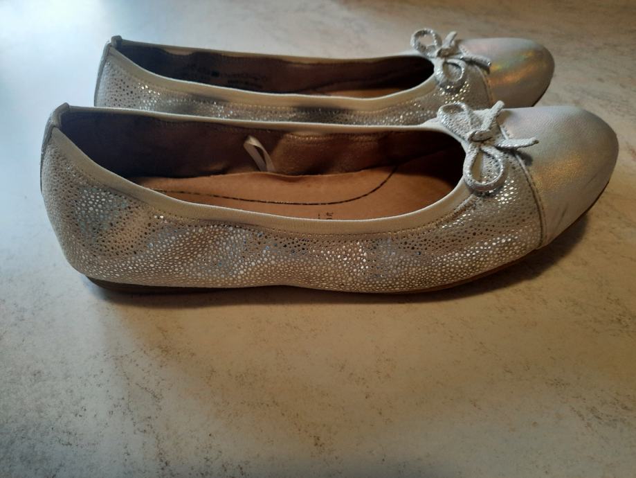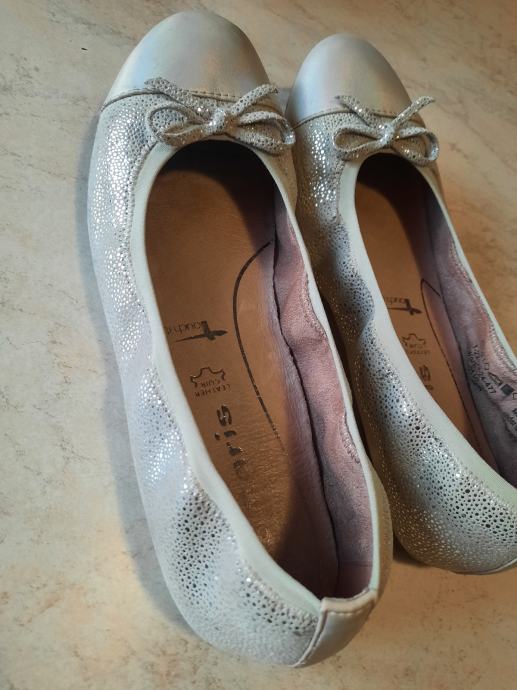 Prodajem Tamaris kožne balerinke br. 36 u odličnom stanju za 15 eur. Boja srebrno/drap. U. gazište 23 cm.