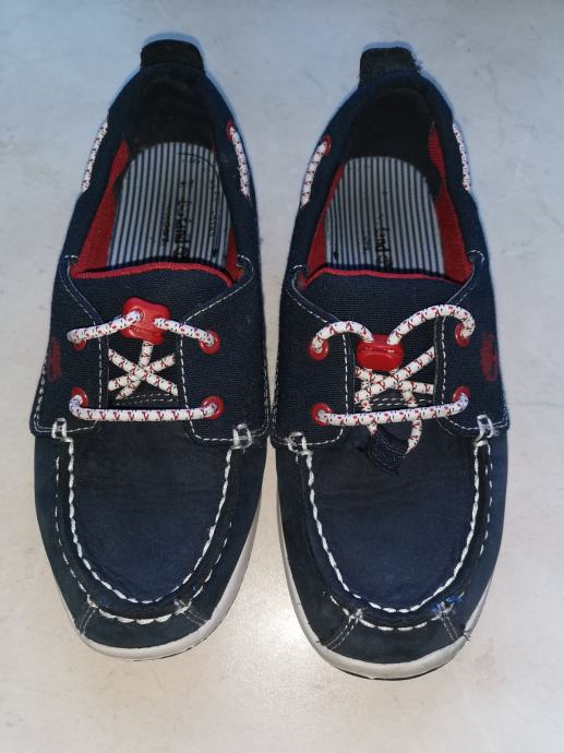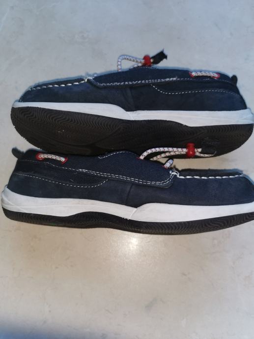 Jednom nošene cipele za pir. Tamno plave, muške, dječje, broj 33, unutarnje gazište 21 cm. Nigdje oštećene, stanje 10/10. Imaju elastičnu vezicu s kojom podešavate širinu.