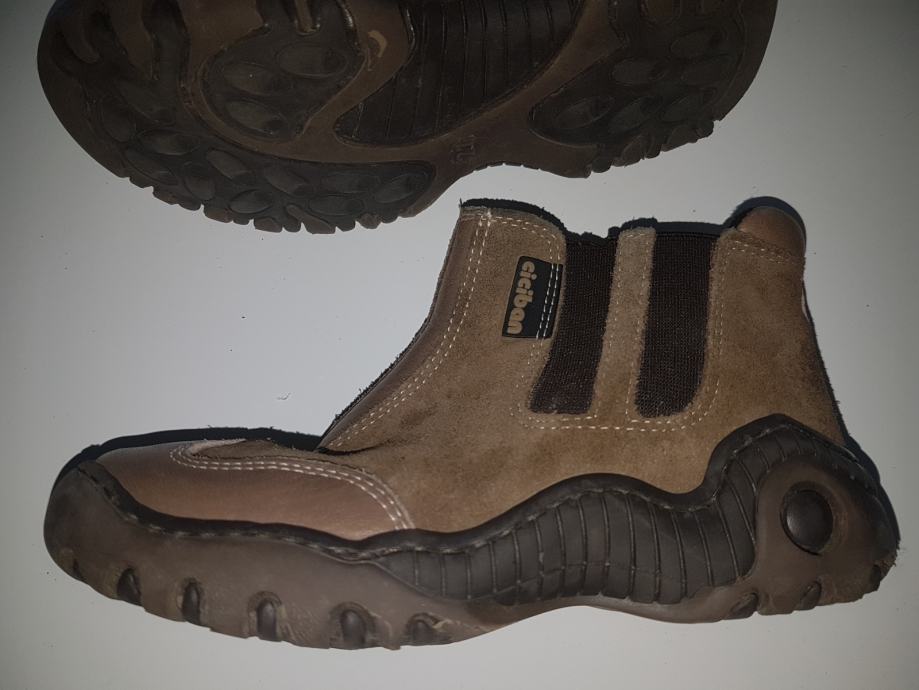 Ciciban čizme prava 100 % koža , anatomski ulozak kožni , debeli gumeni džon , lagane, tople ,prozracne ne popusne sa cifom ..stanje vrlo vrlo dobro po potrebi saljem dodatne slike i mjere na mail ili viber