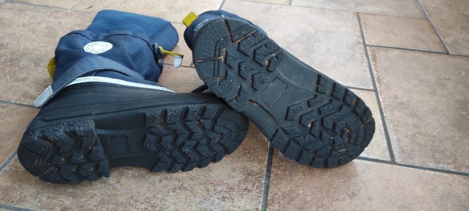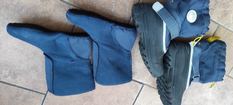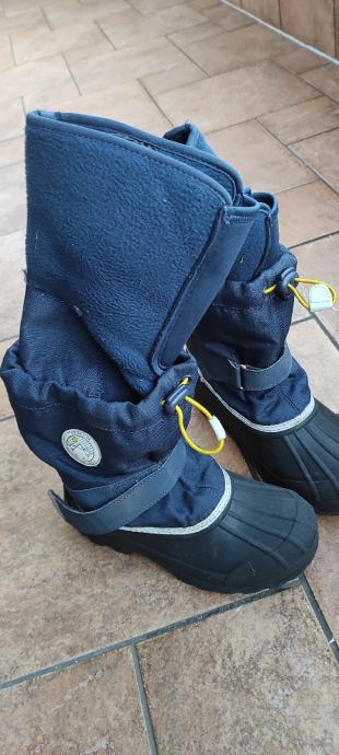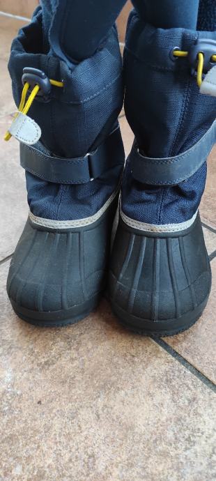 Dječje vodonepropusne tople čizme za snijeg i kišu. Donji dio gumeni. Podstava se skida. Unutarnje gazište 21.5 cm. Brand H&M. Boja crna i tamno plava. Jako dobro očuvane, bez oštećenja.