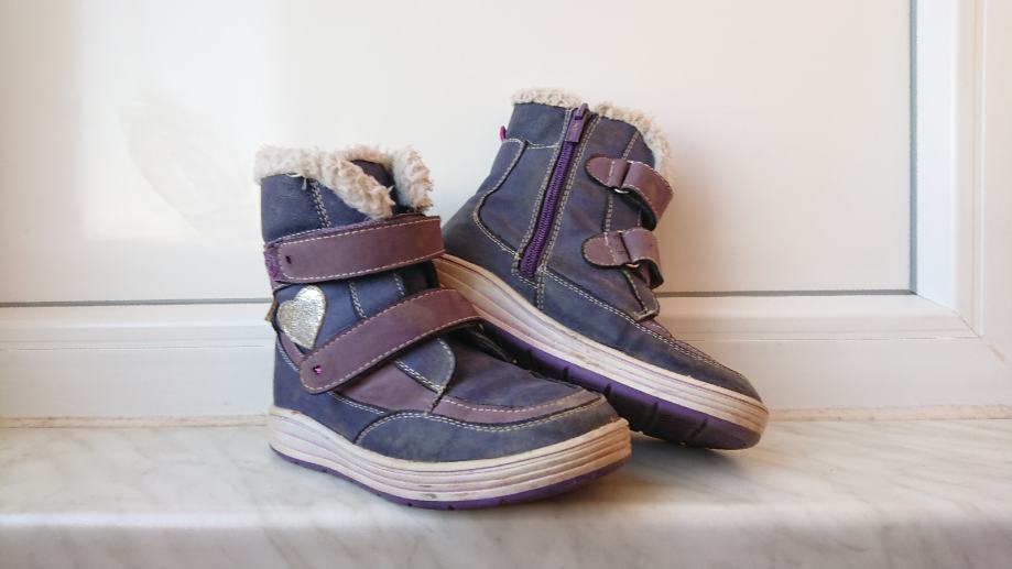 za curice br. 30, ug cca 19cm, ljubičaste boje, kopčanje na čičak, tople i udobne, nošene, stanje vidljivo na slikama.