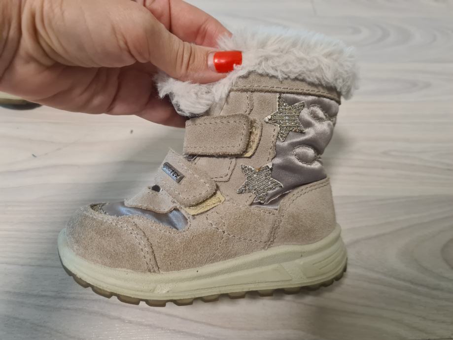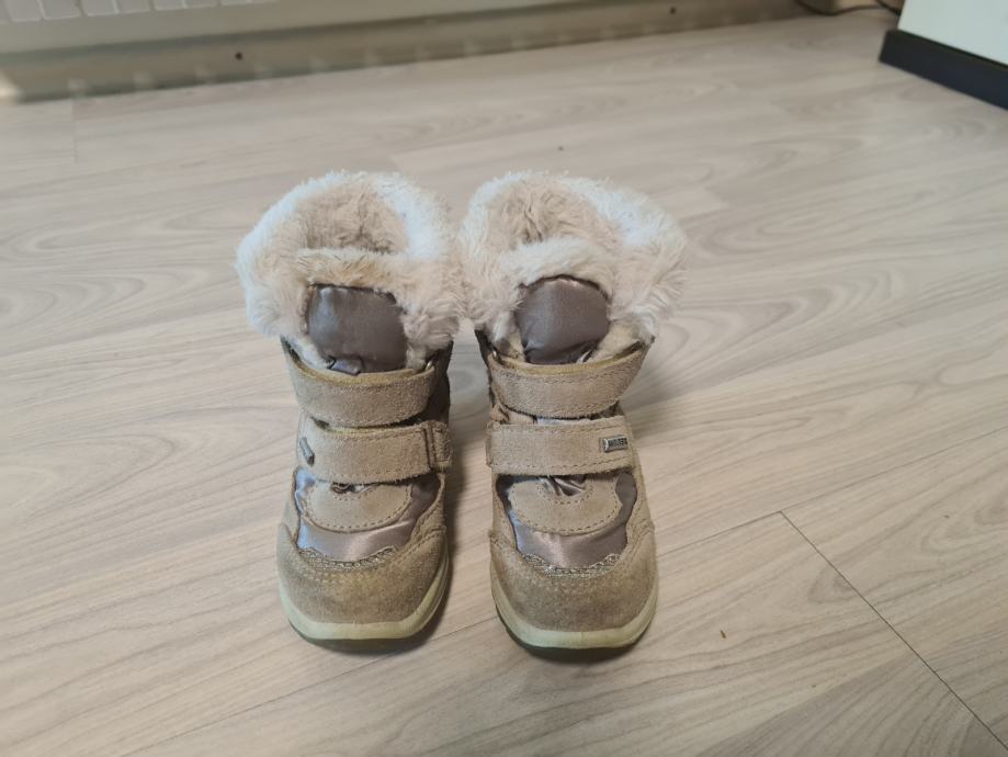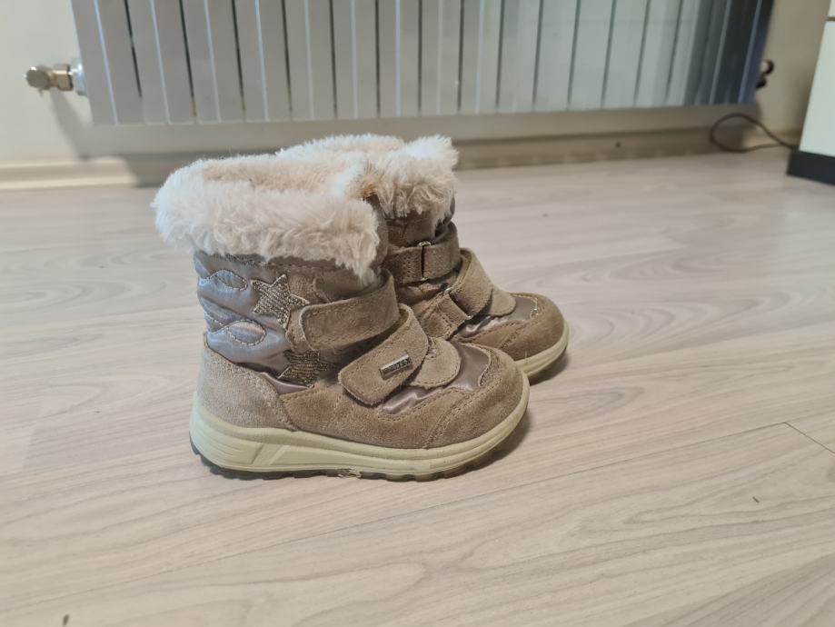 Prodajem dječje čizmice za snijeg br 24. Napravljene od vodonepropusnog materijala sa kombinacijom prave kože. Kupljene u Mass dućanu,skupo plačene, i kvalitetne.
