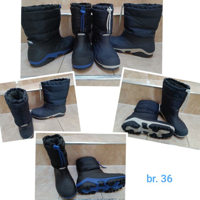 Čizme su nošene samo nekoliko puta i izgledaju kao nove. Unutrašnjost je topla, postavljena, a donji dio je gumiran pa su odlične za kišu i snijeg.