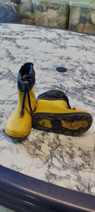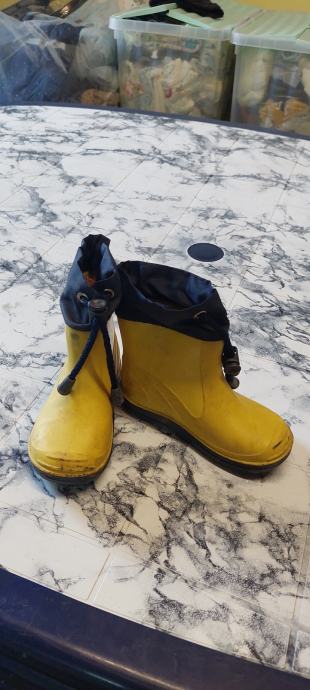 Prodajem žute dječje gumene čizme vel. 23. Tamno plavi rub za stisnuti. Nošene, u dobrom stanju i bez oštećenja.