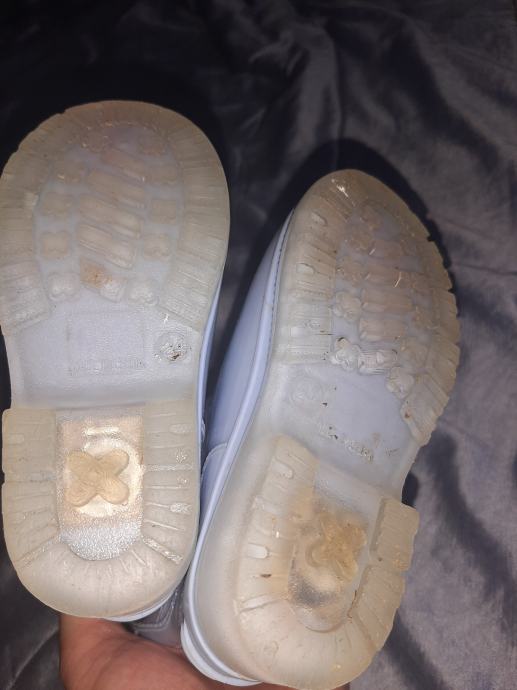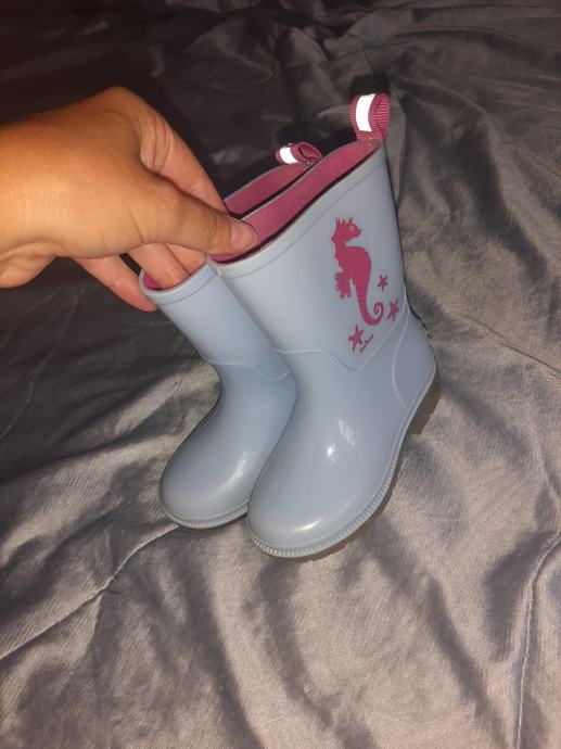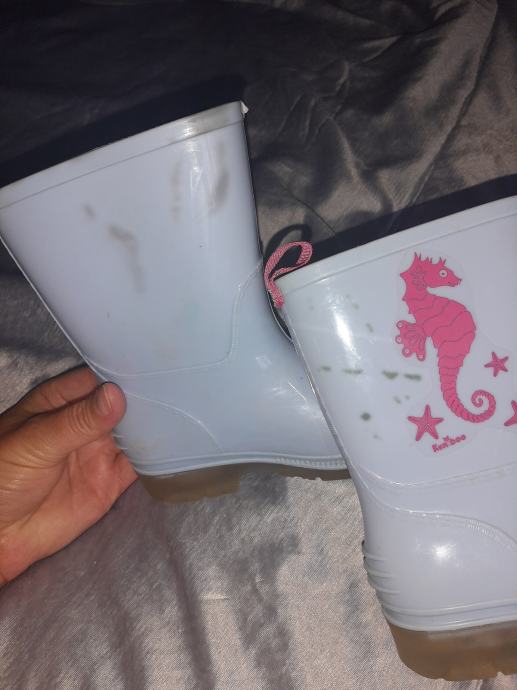 Dječje gumene čizme. Nošene svega par puta. Oštećenje poslikano (boja - flekići na čizmama). 9Poslikano na zadnjoj slici. Vel. 24