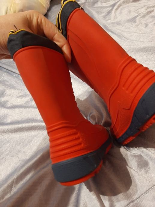 Nove dječje gumene krznene čizmice. Čizmice su potpuno nove, ali su kupljene lijeva je vel. 25, a desna 26. Ne vidi se neka razlika u veličini jer je iznutra krzno.