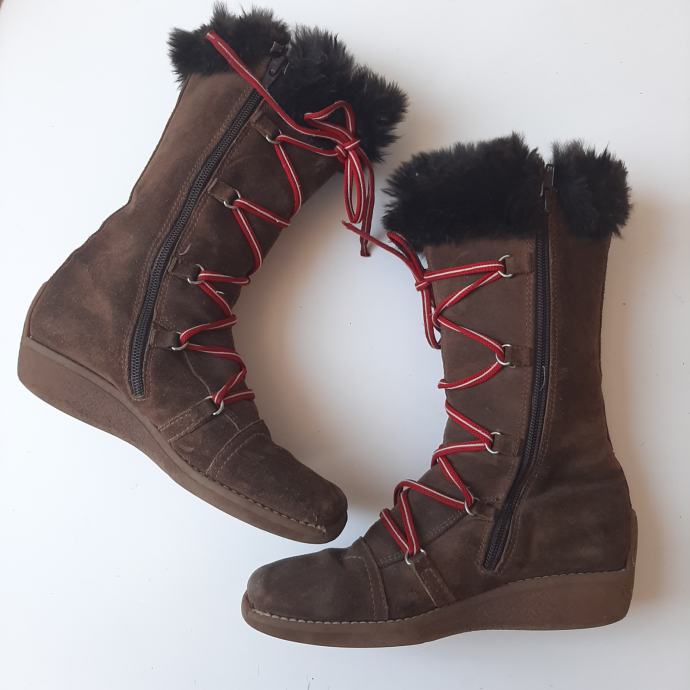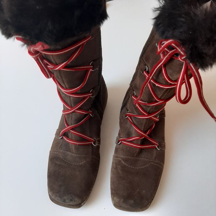 Dječje kožne čizme s krznom Dolce & Gabbana 35 duljina gazišta 23cm, pravo krzno, gazište od sirove gume, kao nove