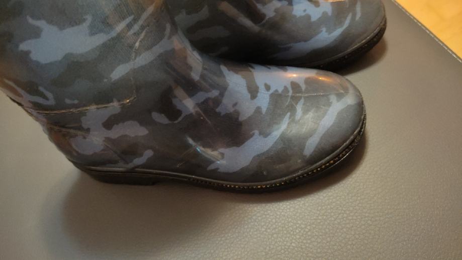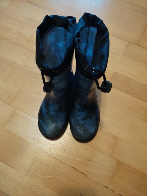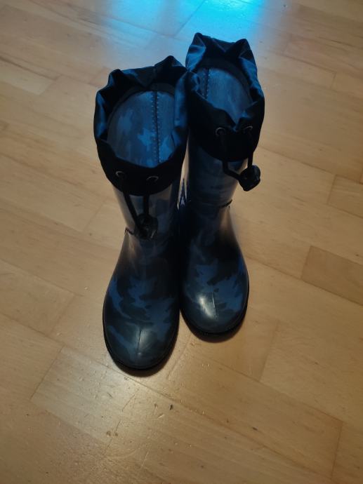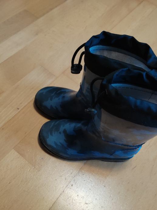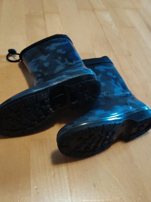 Prodajem dječje gumene čizmice broj 28/29, crno-plave maskirne boje ,idealne za kišne dane.Imaju poteznu špagu da voda ne može ući u unutrašnjost.