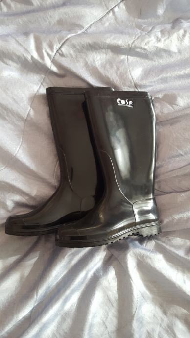 Dječje gumene crne čizme Bata. Piše vel. 35, ali su manje. Unutarnje gazište 21cm Nošene svega dva puta. Otraga gore na sari izrezano radi lakšog obuvanja ( ne primjeti se da nije tvornički rezano)