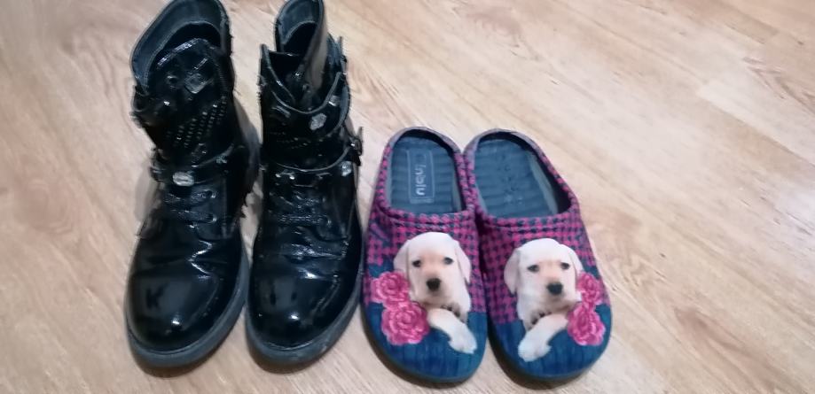 Lakirane čizmice i papuče zajedno prodajem za 6 EUR čizmice su crne lakirane sa manjim oštećenjima ali još su nosive.