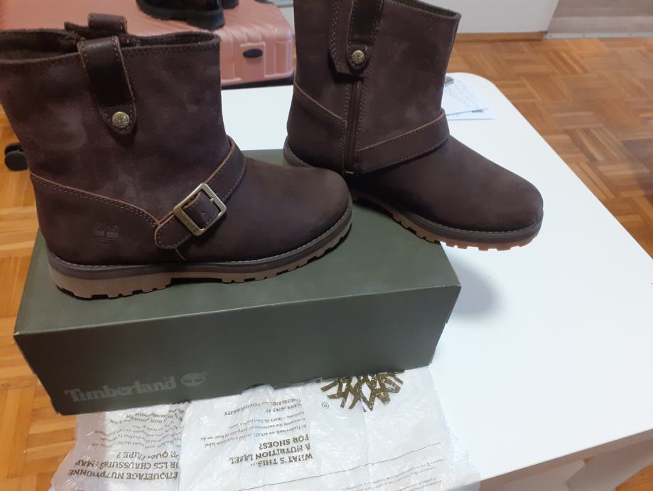 Prodajem NOVE i nažalost nikad nošene TIMBERLAND ŽENSKE ČIZMICE jer je djetetu narasla noga za 2 broja u 5 mjeseci. Kupljene su na proljeće 2025. godine za 50 eura kao dobra prilika. Smeđe su boje, brušena koža. Sve se vidi na slikama. Žao mi je da ih uopće moram prodavati. Cijena je 30 eura. Stavljam poveznicu da ih vidite na stranici e - cipele gdje koštaju 113 e