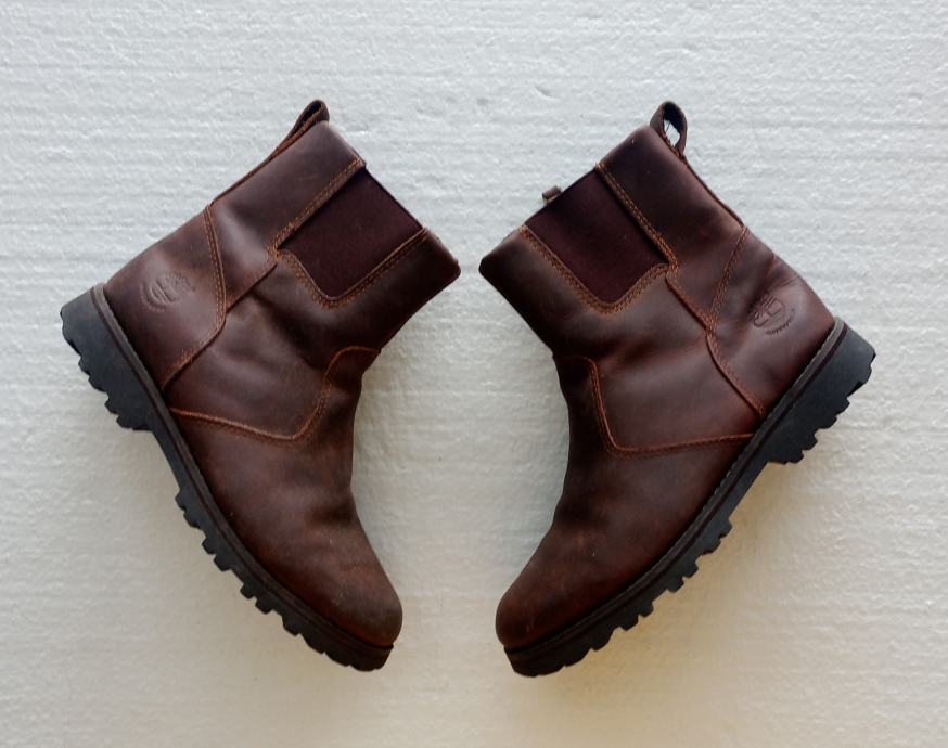 TIMBERLAND BOYS WATERPROOF čizmice veličine 34 (gazište 22 cm), realno vel. 33. Gornjište od glatke smeđe kože. Vodootporne. EARTHKEEPERS ulošci koji se mogu izvaditi. U odličnom stanju, malo korištene.