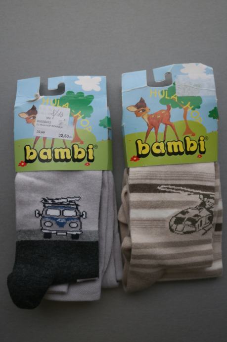 Lot 2 dječje štramplice, za dečke, Bambi, veličina 8 - 10 tj. za stopalo 31 - 34, međutim manje su, više za veličinu 122 128, pamuk 80%, poliamid 15%, elastin 5%, nove, zapakirane