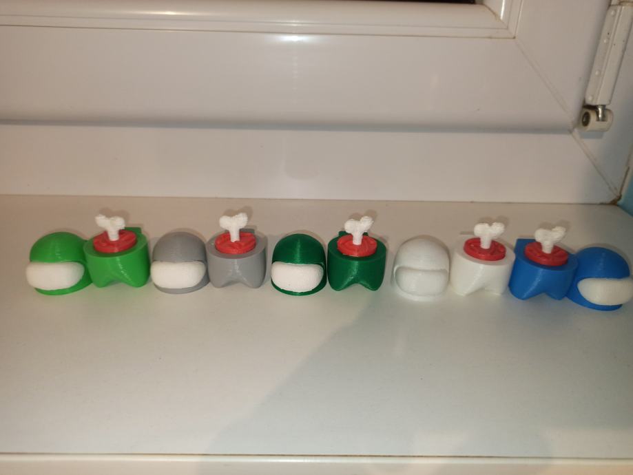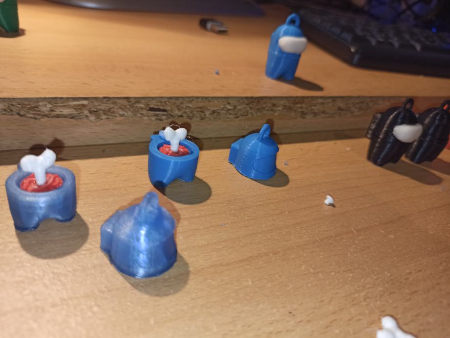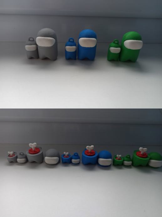Prodajem velike, srednje, male i u obliku čovjeka Among us figurice printane 3D printerom. Manje figurice velicine 2,5cm, srednje 5cm , velike 7,5 cm i u obliku čovjeka 15cm. Manje se mogu koristiti kao privjesak za ključeve.