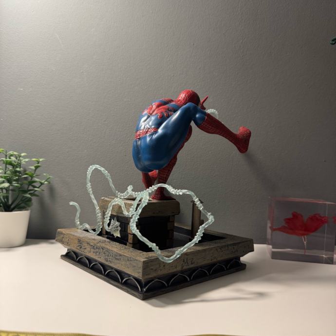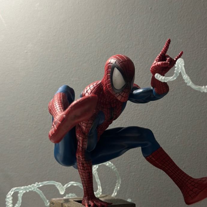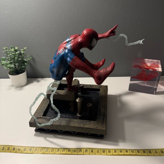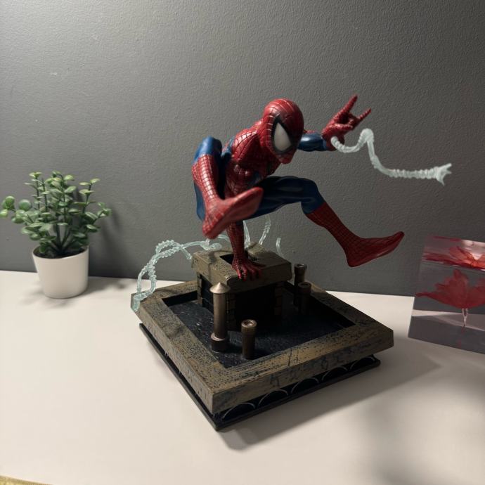 Spider-Man figura Diamond Select Toys u plavo-crvenoj kombinaciji, dimenzija 15 x 12 x 20 cm, izrađena od kvalitetnog PVC-a. Nepomična je i detaljno prikazuje lik Spider-Mana, uključuje stabilno postolje za sigurno izlaganje te je službeno licencirani Marvel proizvod, idealan za kolekcionare i fanove.