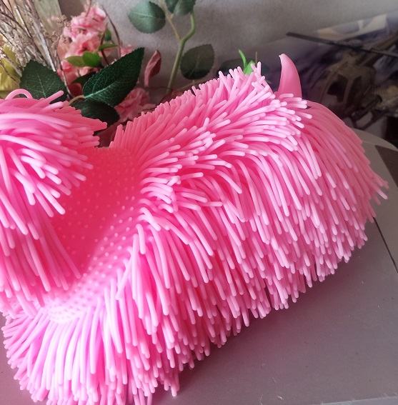 gumeni čupavi psić koji svjetli ,kad ga se prodrma.