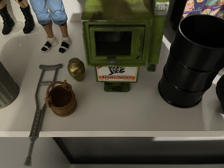 Prodajem WWE rekvizite i oružja i opremu za WWE ringove i WWE figure. Artikli su u top stanju. Cijene rekvizita su