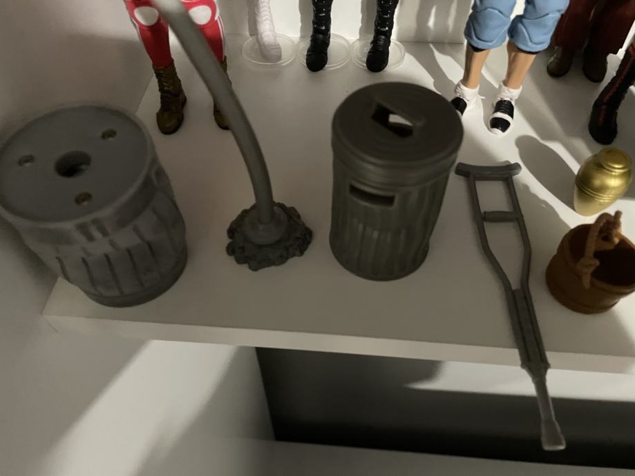 Veći rekviziti stolice, velika urna, stupovi, nosila, zaštitne barikade i ograde, gume i kante za smeće po 2 EUR komad.