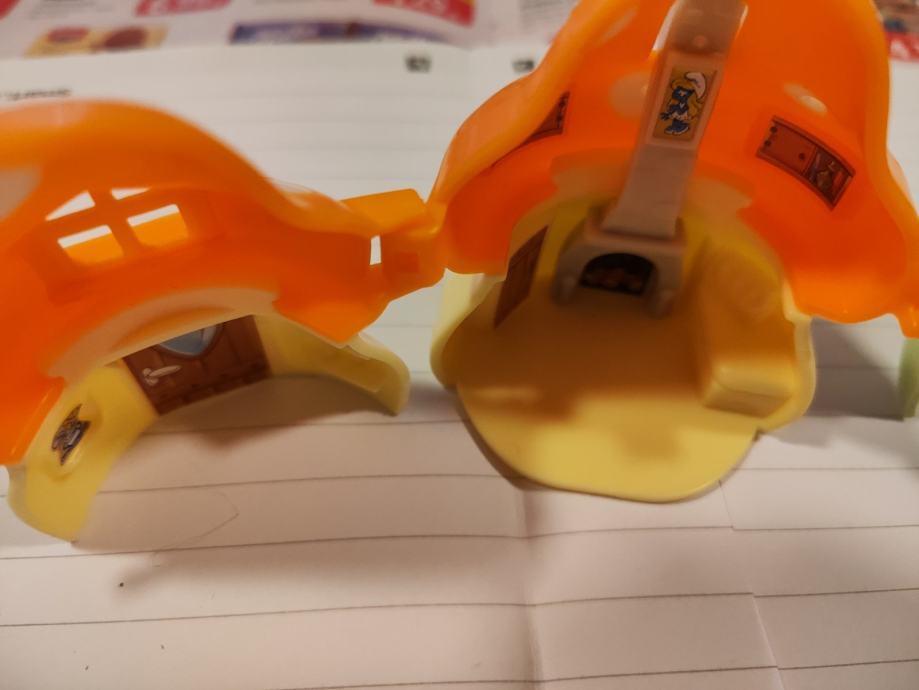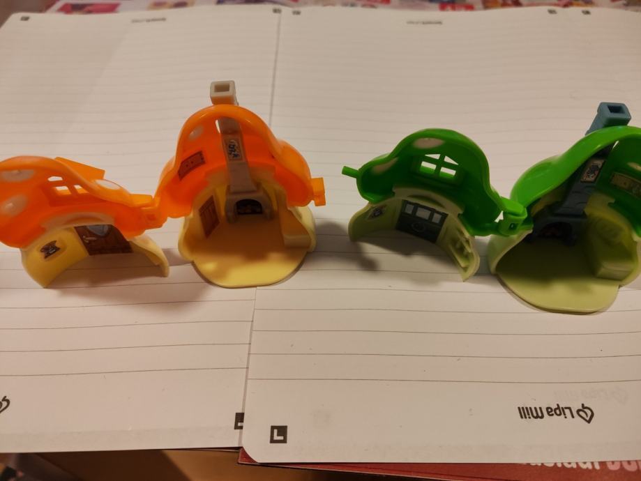 Kućice su dovoljno velike da se u njih spremi 1 Kinder Surprise figura Štrumpfa ili Štrumpfete ( Smrketa)