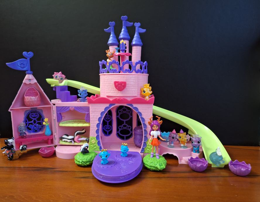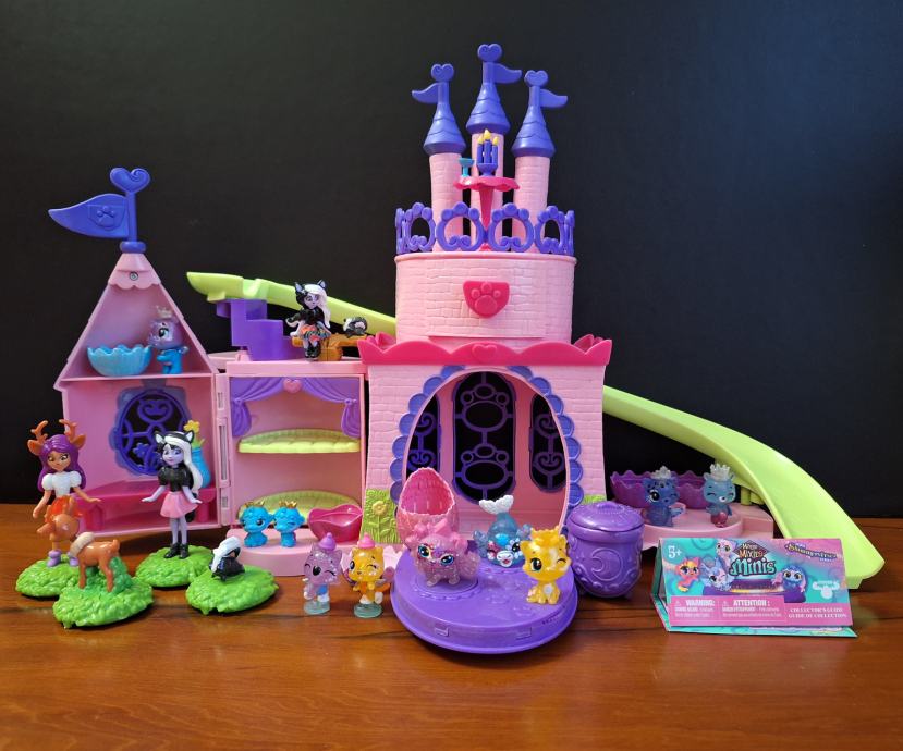 U setu dolaze: dvorac, 8 Hatchimals figurica uz svoje originalne ljuske jaja, 3 Enchantimals figurice i 2 Magic mixies minis.