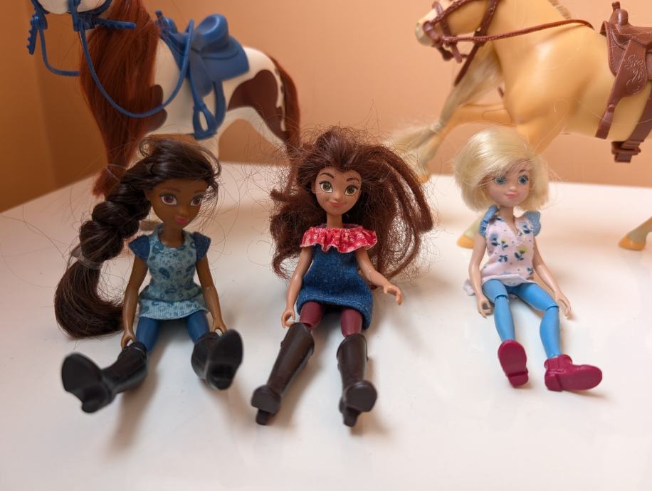 Figure iz Spirit crtića, komplet se sastoji od figura tri djevojčice i tri konja -