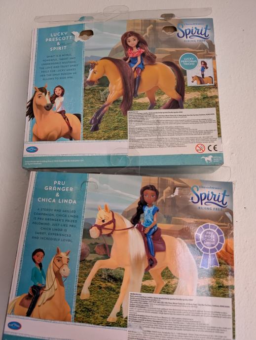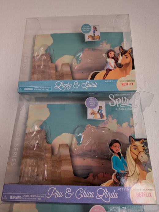 - Lucky i divlji mustang Spirit - na leđima Spirita Lucky može sjediti, ali i stajati, baš kao u poznatom crtiću, samo se okrene poseban dio na leđima konja,