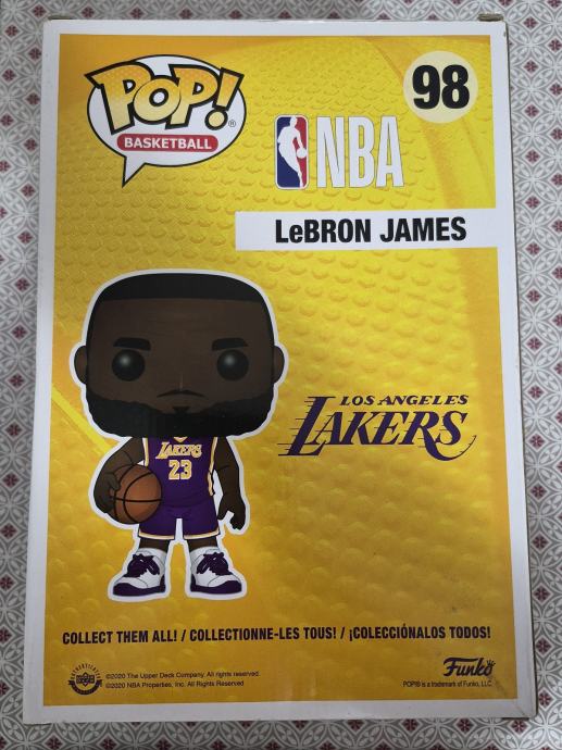 Originalna Funko POP! figurica LeBron James iz kolekcije Funko POP! sports: basketball. Figurica je nova, jedino što je stajala u ormaru duže vremena, ali na njoj nema vidljivih oštećenja! Dolazi u originalnom pakiranju, kao na slici.