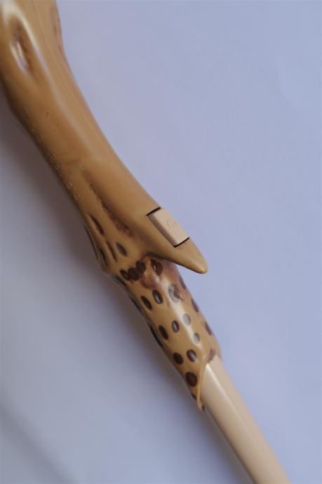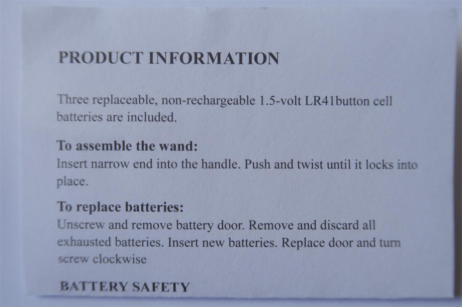 Štapić je dužine 20 cm. Na sebi ima mali prekidač sa kojim se pali ledica na vrhu koja svijetli.