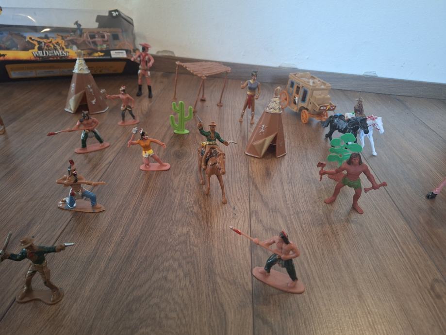 -slika 4 NOVI set zapakiran(kocija,dva konja i 4 indijanca)7.5e