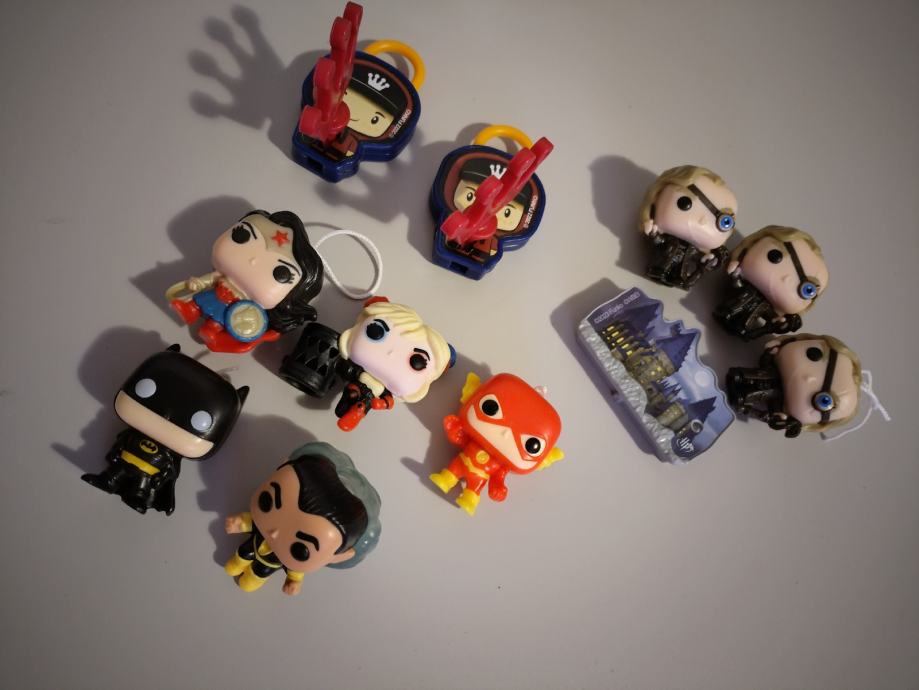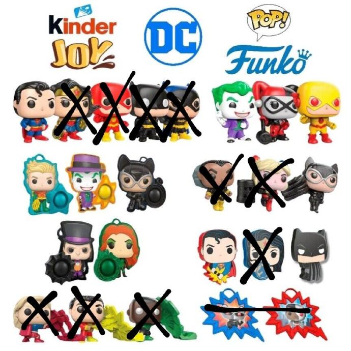Mjenjam ili prodajem figurice sa slike za neprekrižene Funko, DC Kinder Joy ili Disney 100. Mjenjam i 3 čokoladne polovice Kinder Joy za jednu figuricu.