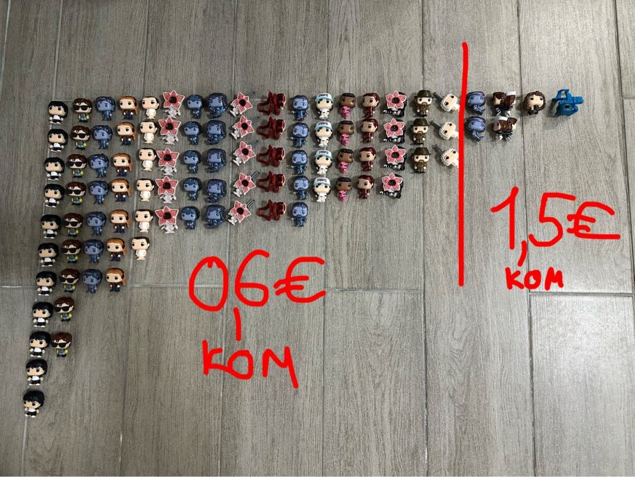 Figurice iz kolekcije Stranger Things, Kinder Joy. Cijena po komadu na fotografiji, svi dijelovi su uključeni i originalno pakiranje s umetkom. Mogu dodati i dio od čokolade za 0,5€ po komadu (datum proizvodnje 14.08.2026.). Kaštel Novi, ili dostava putem PayProtecta (od 5 figura u narudžbi).