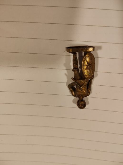 Izrađena je od lijevanog metala i obojena u zlatnu boju.