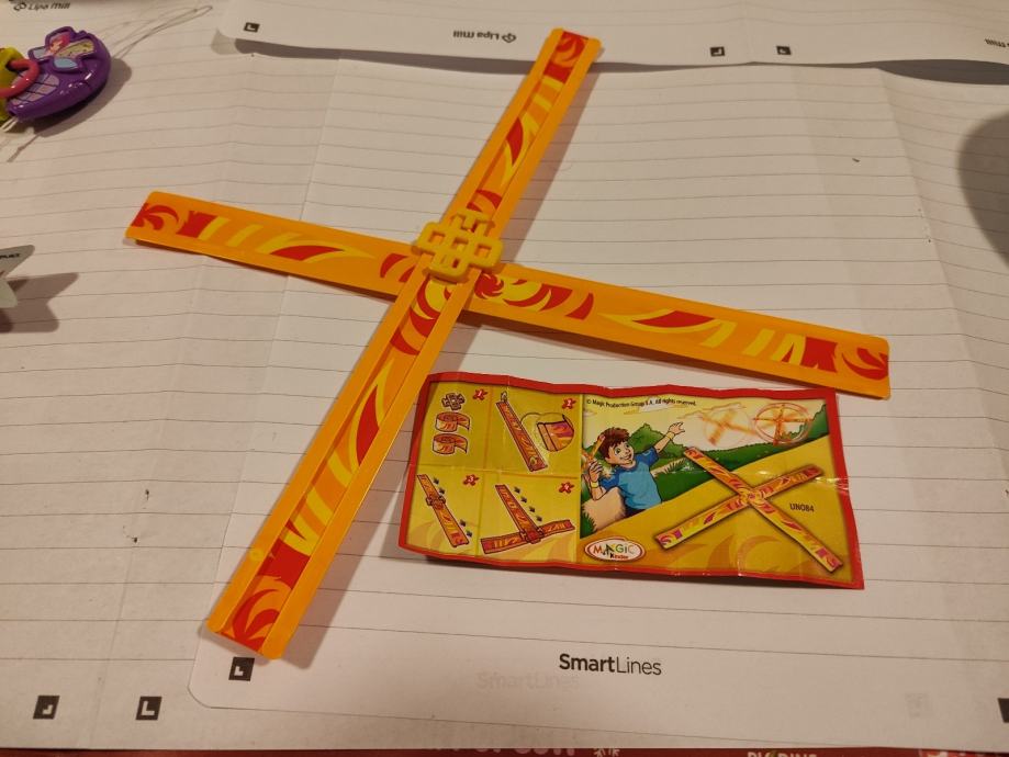 Kinder Surprise Bumerang narančaste boje. složi se bumerang koji se vraća, diđenzijama veća igračka