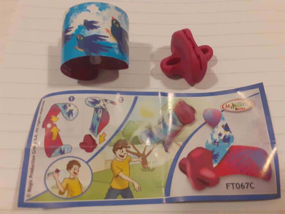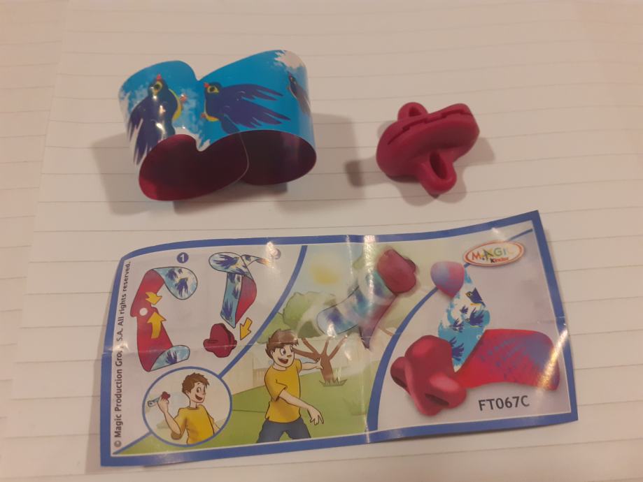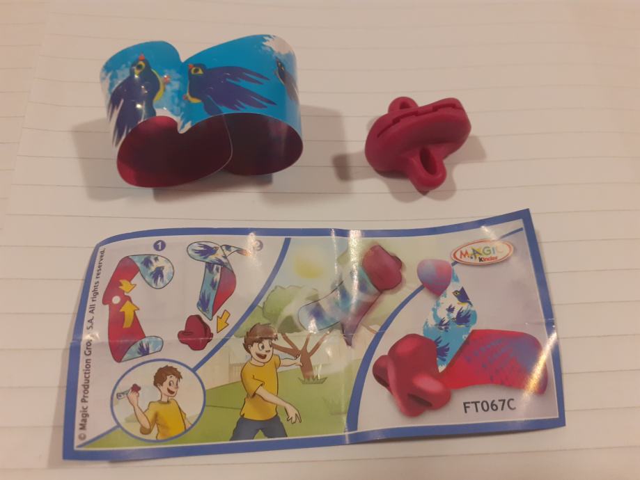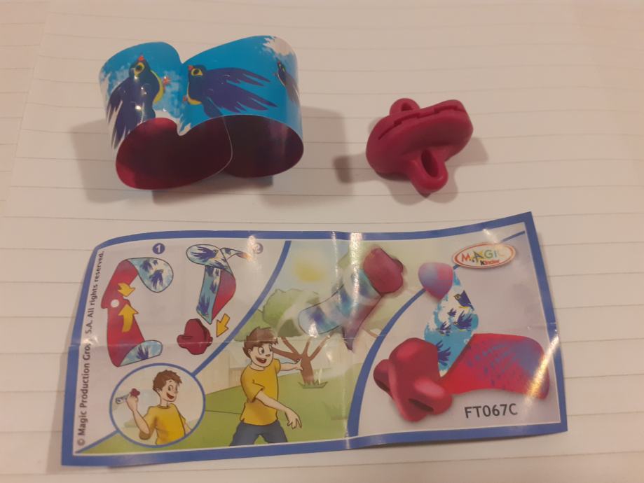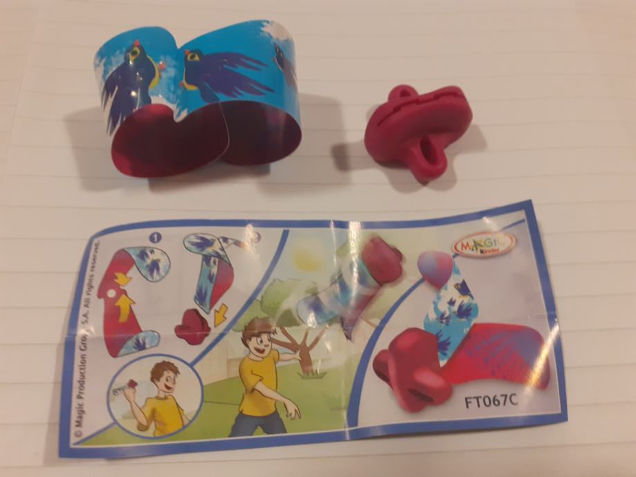 Igračka se sastoji od narukvice s uzorkom ptica i crvenog plastičnog dodatka.Upute prikazuju kako se dijelovi sastavljaju u oblik koji djeca mogu koristiti za igru na otvorenom.Na uputama se nalazi poveznica na web stranicu (www.2magic.com) za više informacija.