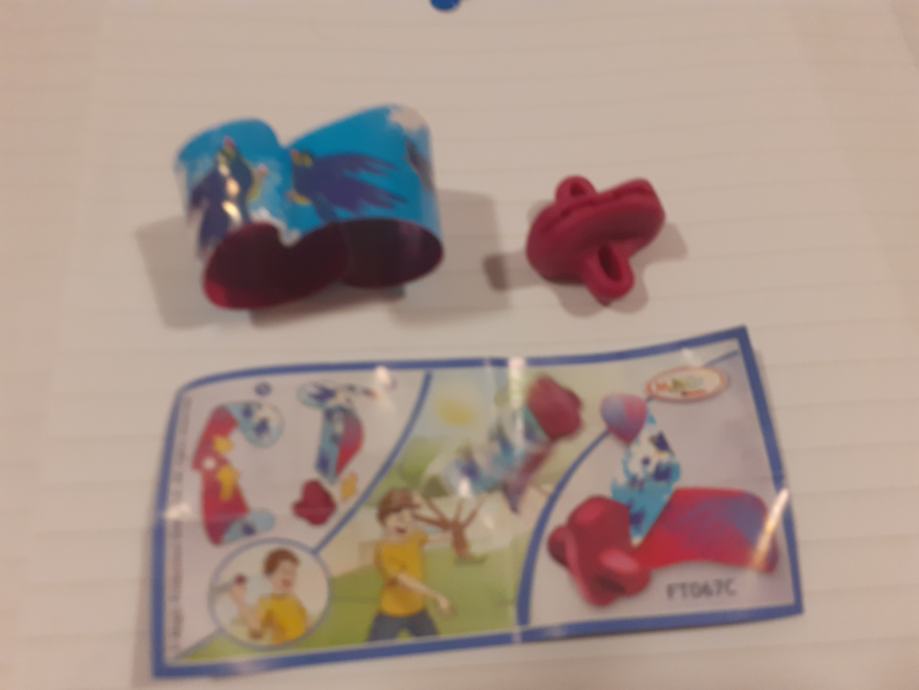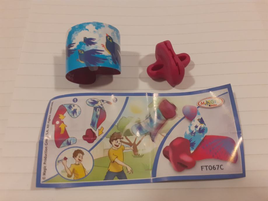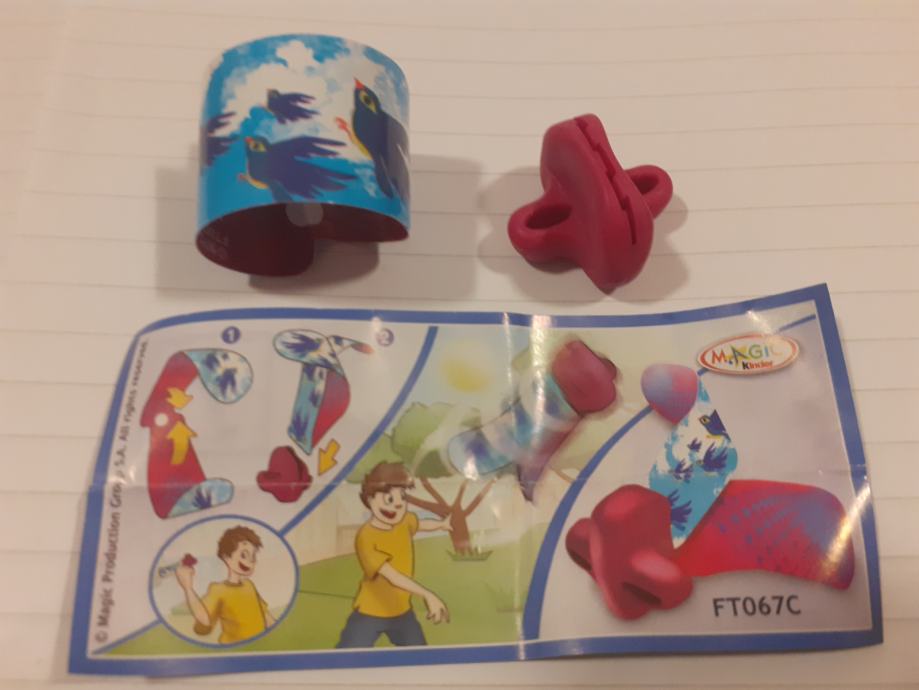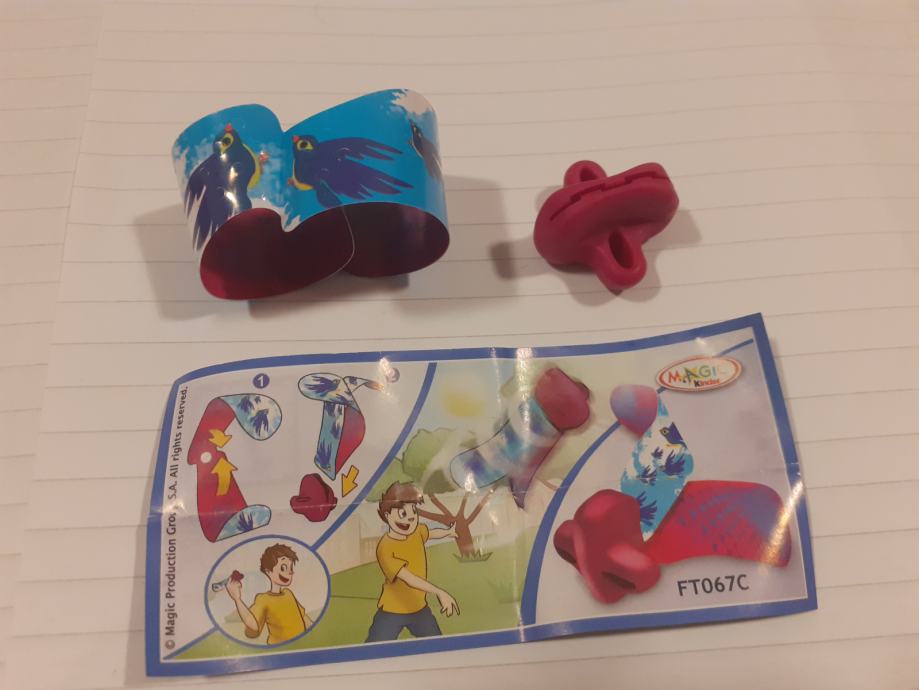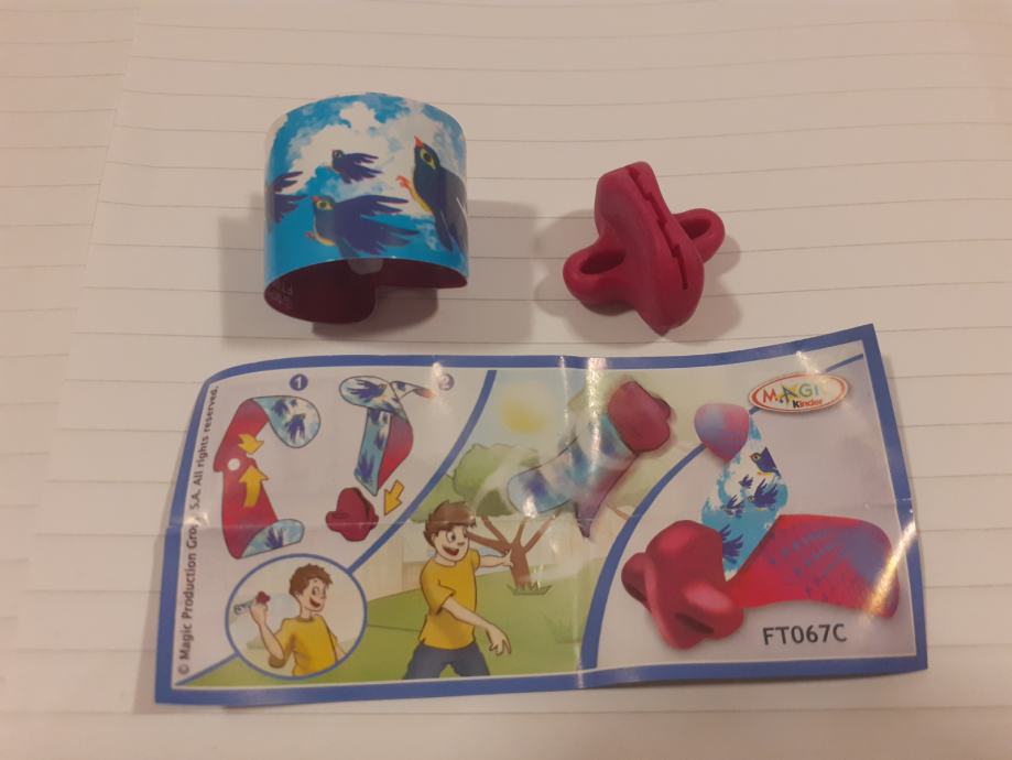Igračka se sastoji od narukvice s uzorkom ptica i crvenog plastičnog dodatka.Upute prikazuju kako se dijelovi sastavljaju u oblik koji djeca mogu koristiti za igru na otvorenom.Na uputama se nalazi poveznica na web stranicu (www.2magic.com) za više informacija.