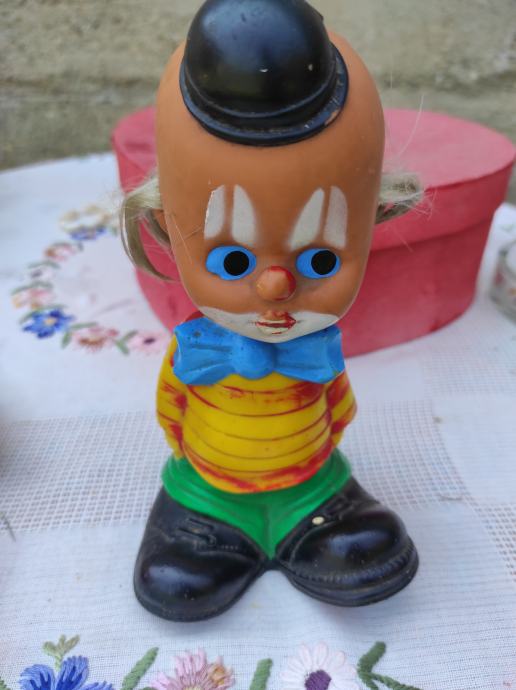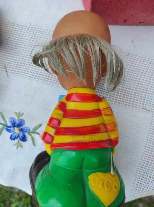 Stari klaun Cico kojega je radila Jugoplastika firma iz bivše države Jugoslavije.Sve se vidi na slikama,za sve informacije nazovite ili pošaljite upit na Viber ili Njuskalo ,a Šaljem Poštom ili Tiskom ili u dogovoru sa kupcem,visok je 20 centimetara,opran i ceka iduceg vlasnika.Vidi slike!!